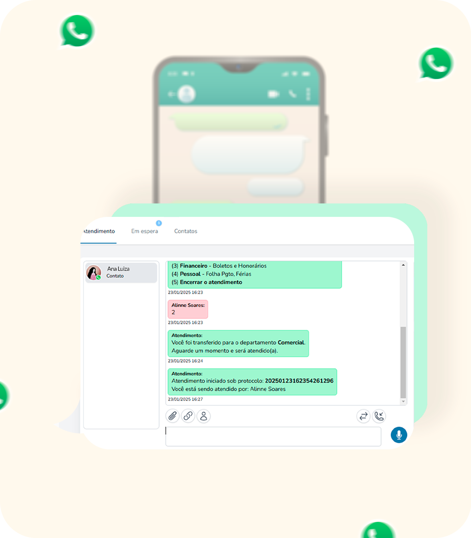 com o cliente direto no WhatsApp, de forma automatizada e organizada.
