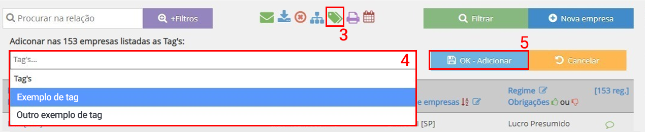 - Clique em "OK Adicionar" para finalizar a inclusão da(s) tag(s) nas empresas desejadas.