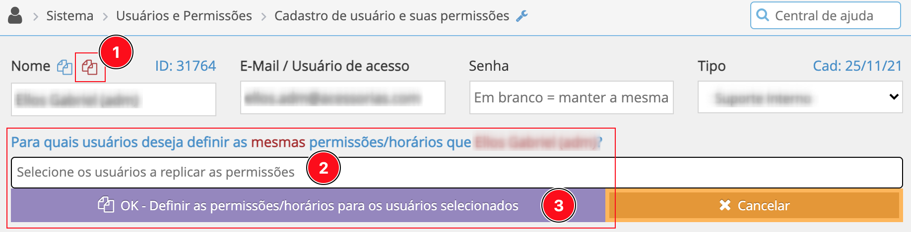 - Informe para quais usuários você deseja copiar as permissões e horários (2)