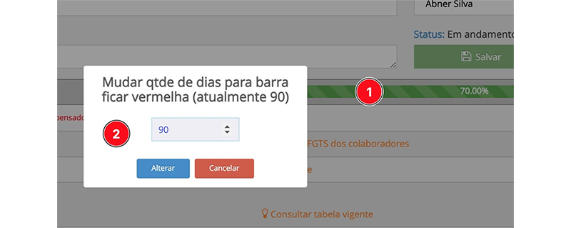 Também liberamos uma opção para alterar a quantidade de dias para a barra de progresso ficar vermelha diretamente no uso do processo.
