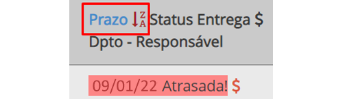 Para utilizar essa ordenação, basta acessar a lista de entregas e clicar sobre "Prazo" até a exibição ordenar de Z-A: