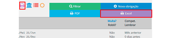 - Clique sobre o ícone "Imprimir obrigações" (em roxo)