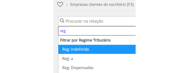 4- Novo filtro na busca de empresas: Regime Indefinido