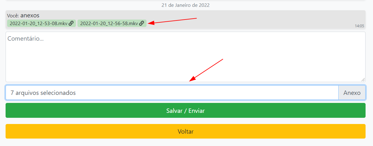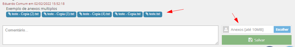 Obs. O limite é de 10 anexos por upload com até 10MB no total dos anexos.