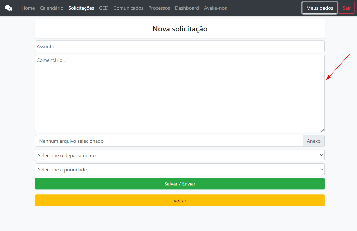 7- Ajuste no limite de texto das solicitações da Área VIP