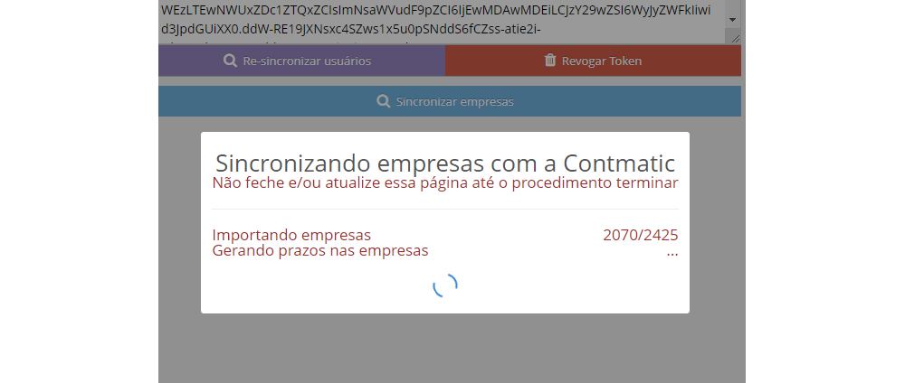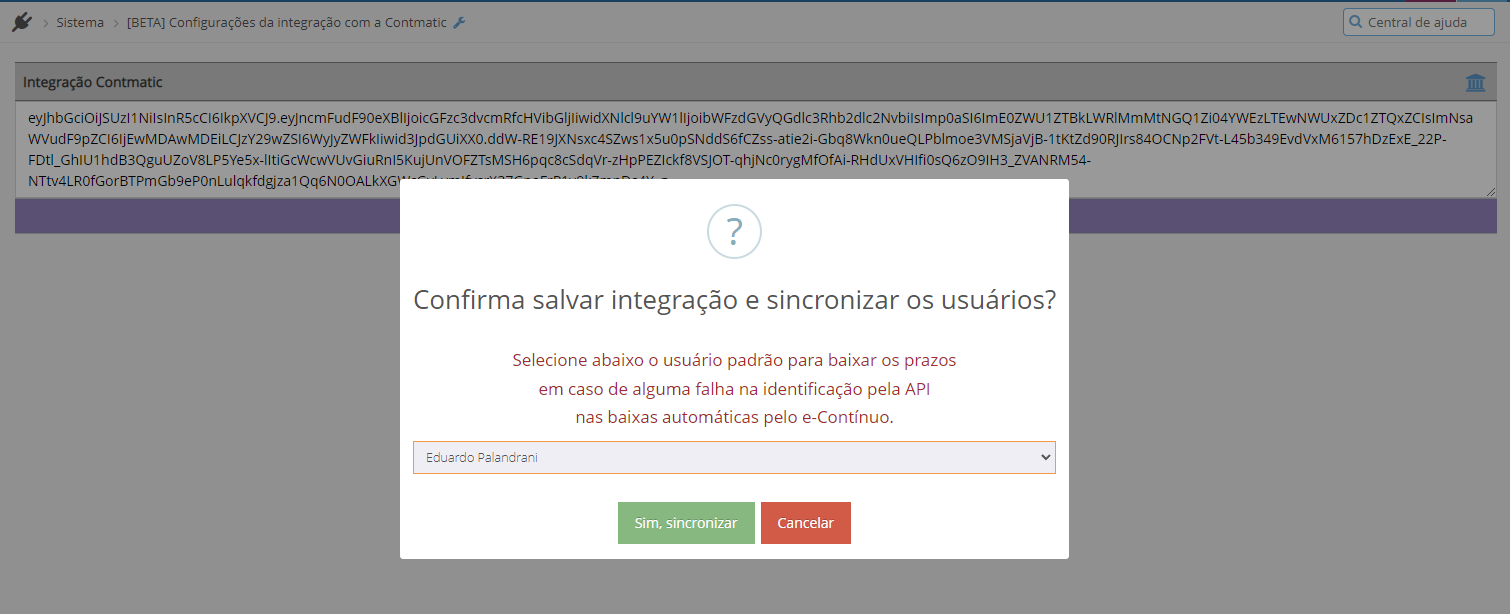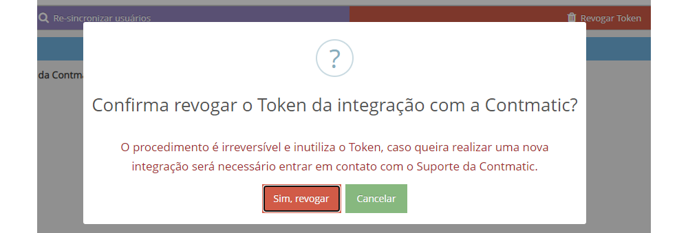 Importante: Este procedimento invalida o token junto a Contmatic. Então, caso queira configurar a integração novamente, um novo Token será necessário.