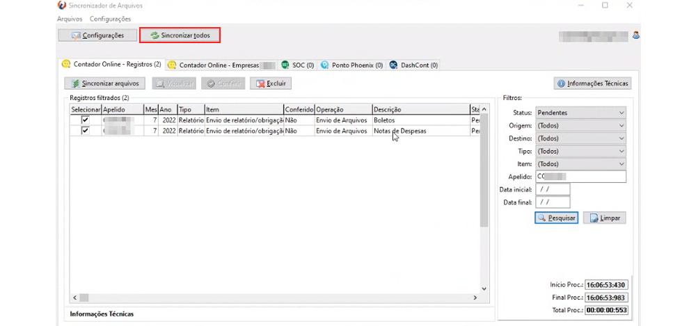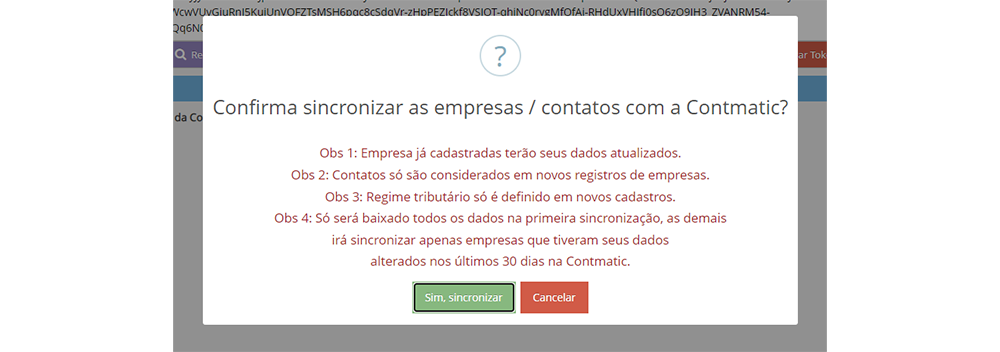 Após a segunda sincronização, somente serão buscados cadastros com alteração nos últimos 30 dias na Contmatic.