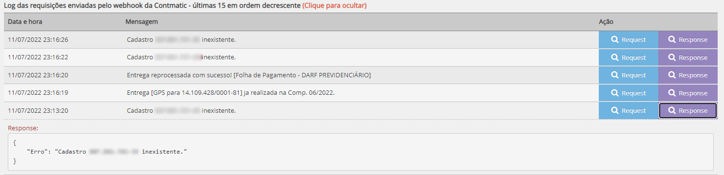 O e-Contínuo salva todos os logs dos envios realizados pela integração. Assim, você consegue acompanhar as mensagens de retorno e identificar documentos que precisam ser homologados pelo time Acessórias: