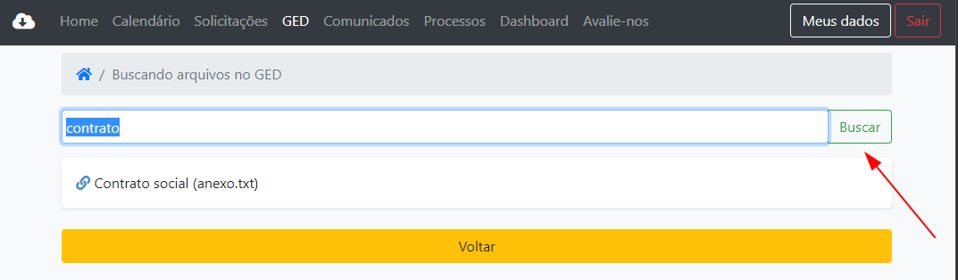 Para isso, basta acessar o menu GED no APP ou na Área VIP e digitar o nome do documento que deseja localizar: