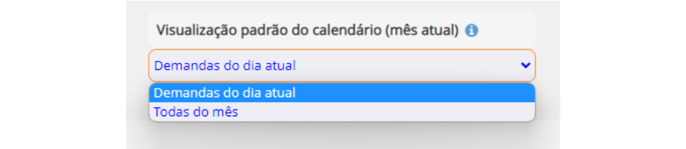 Agora a exibição ao abrir o calendário da Área VIP no mês atual pode ser personalizada entre "Demandas do dia atual" e "Todas do mês".