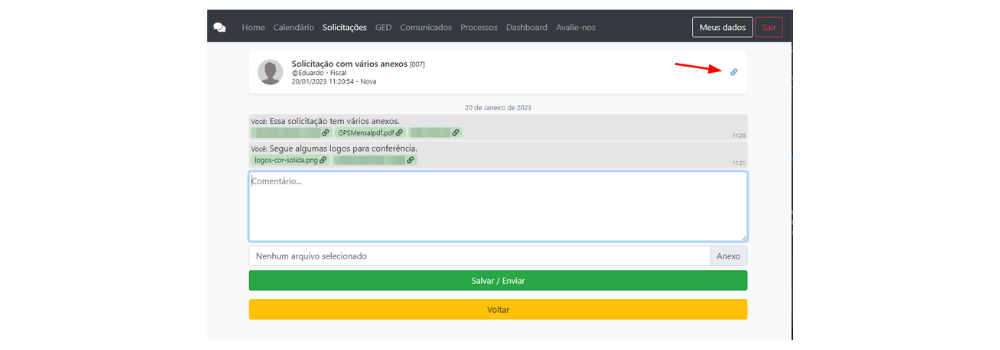 Dica: Essa nova opção aparece em solicitações em que possuírem anexos.