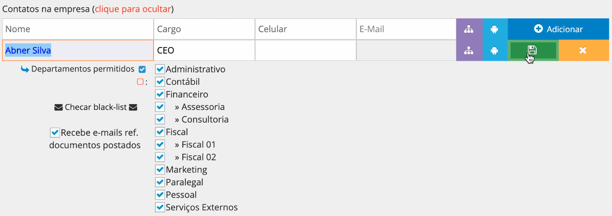 2) Está disponível uma nova opção para que os contatos tenham os departamentos liberados, porém não recebam os e-mails de protocolo digital notificando postagem de novos arquivos.