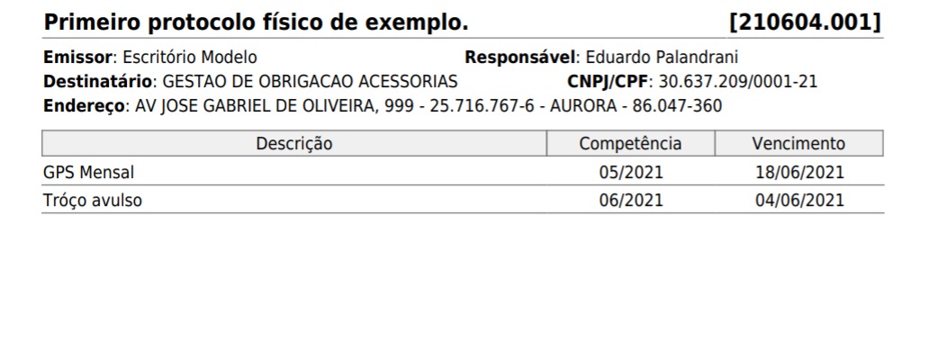 O protocolo físico nada mais é do que o pacote de documentos que o Boy irá entregar fisicamente aos clientes para o escritório. Assim como o e-Contínuo faz no digital.