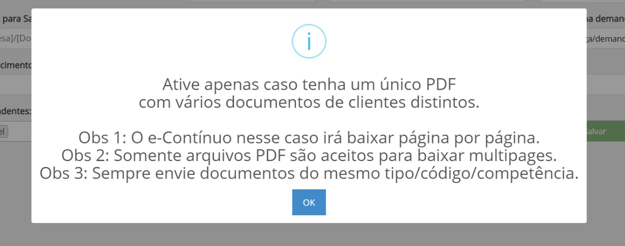 Importante: Para utilizar o Multipages, é necessário que os arquivos PDF sejam do mesmo Tipo, Código e Competência.