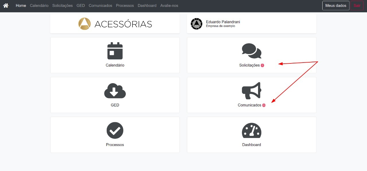 Agora a Área VIP irá exibir um bubble nos botões de solicitações e comunicados na home da Área VIP, identificando quantas interações de solicitações não foram vistas e/ou quantos comunicados não foram abertos.