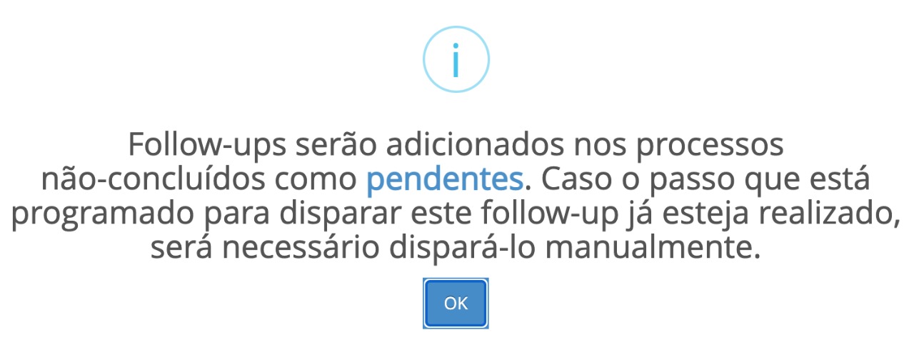 Importante: Follow-ups disparados automaticamente precisam de uma atenção especial, pois eles sempre serão adicionados somente como pendentes: